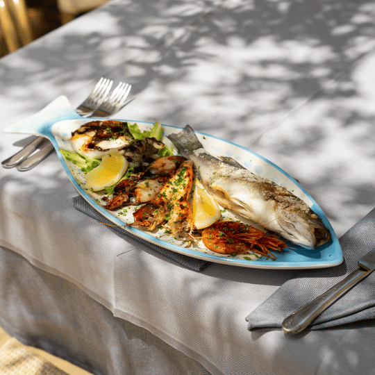 Accanto ai piatti della tradizione marinara, trova spazio un’ampia varietà di proposte di terra, per un menù ricco, in grado di soddisfare tutte le esigenze.
